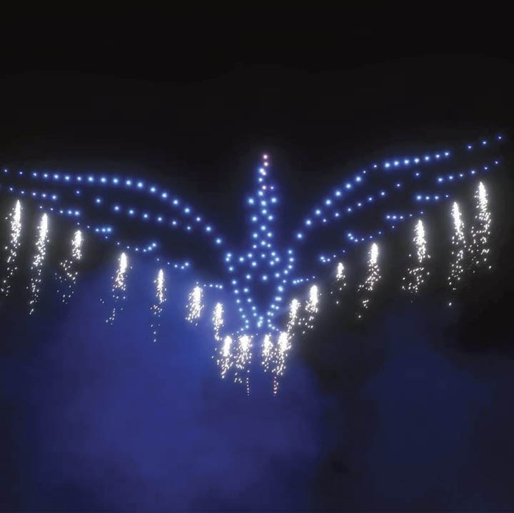Equipados con potentes sistemas de LED RGB, los drones son capaces de recrear bonitas formas y efectos.